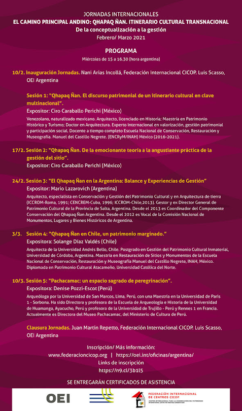 1 - 2a sesión Jornadas Internacionales "El camino principal andino Qhapaq Nan" - actividad gratuita